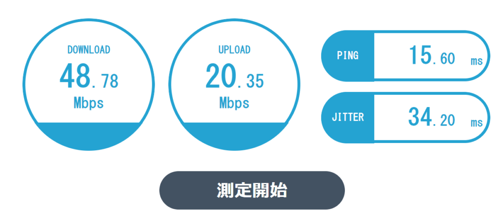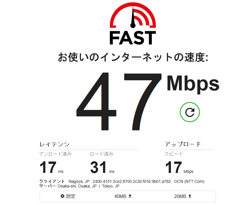 ちなみに我が家マンションです。OCN光の回線速度を図ってみました。テストサイトの結果です。